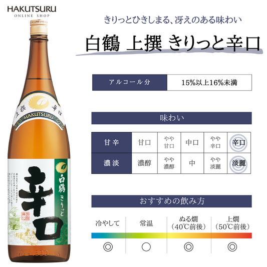 白鶴オンラインショップでは、辛口の日本酒を集めたページもご用意しておりますので、好みの辛口を見つける手助けになれば幸いです。